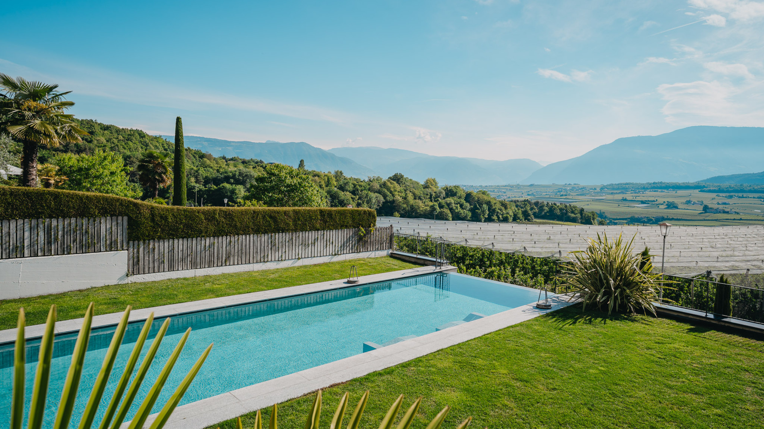 "Wonderful family-run hotel. Sauna, steam bath, infrared cabin and a marvellous infinity pool in the garden with massage jets and bubble loungers as well as panoramic views over the vineyards to the Adige Valley and the Dolomites in the distance. Half board with breakfast buffet and 6-course dinner rounds off the whole experience."